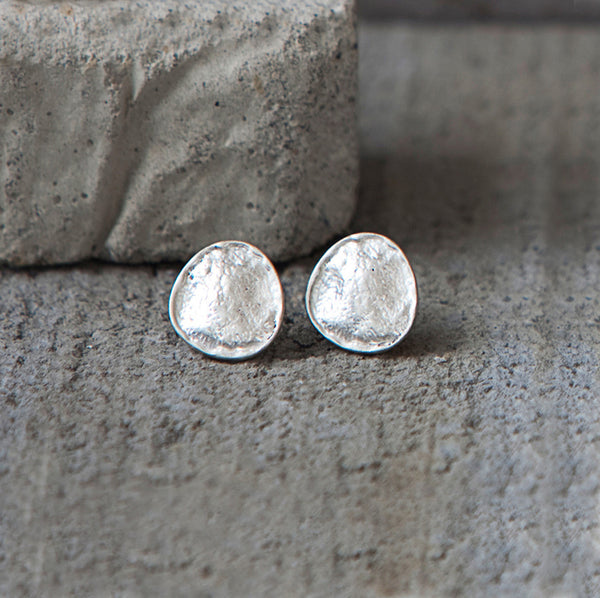 Easy to Wear - charming small off-round hammered stud earrings. These versatile earrings will add just a hint of style to whatever you are wearing. Available in antique silver finish Diameter...