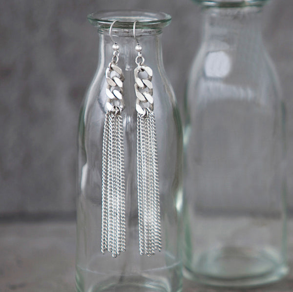Tons of Pizzazz - add a splash of elegance to any outfit with these stunning chain tassel drop hook earrings. Eye catching with loads of wow factor! Available in antique silver...