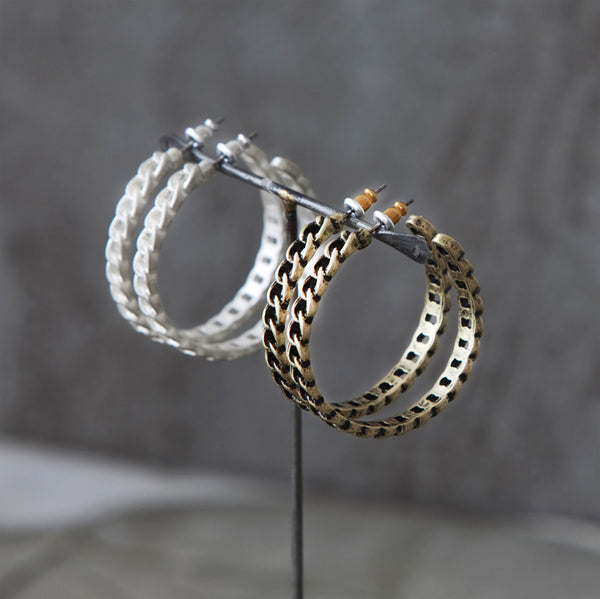 Weekender - on trend solid chain hoop earrings, perfect on their own or teamed with matching chain necklaces and bracelets to layer and re-imagine. These distinctive stud earrings have a stylish...