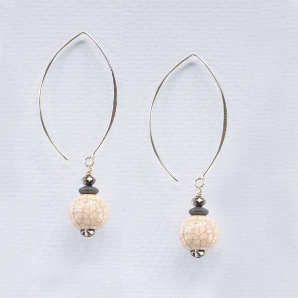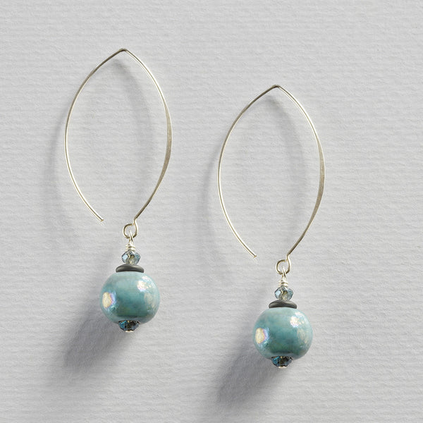 Uptown - dazzling oval drop silver wire earrings teamed with hand-made ceramic beads to wear uptown, downtown or any time. Truly eye-catching on their own but team with a simply styled...