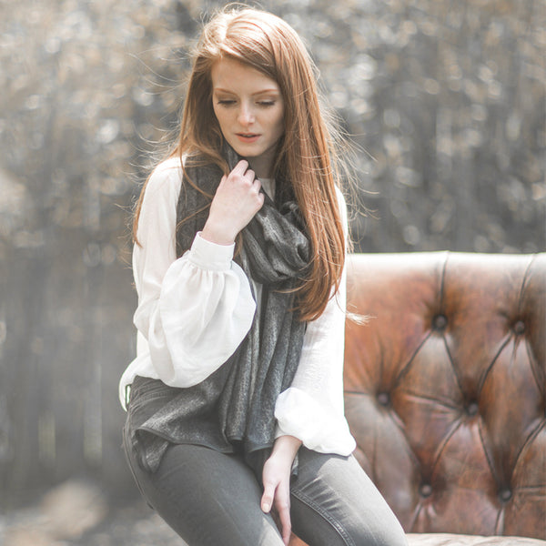 It’s a Wrap – luxurious exceptionally soft-touch graduated grey wrap drifting through shades of navy/charcoal to soft grey. Wear when cool to give an outfit a finishing flourish or thrown over...